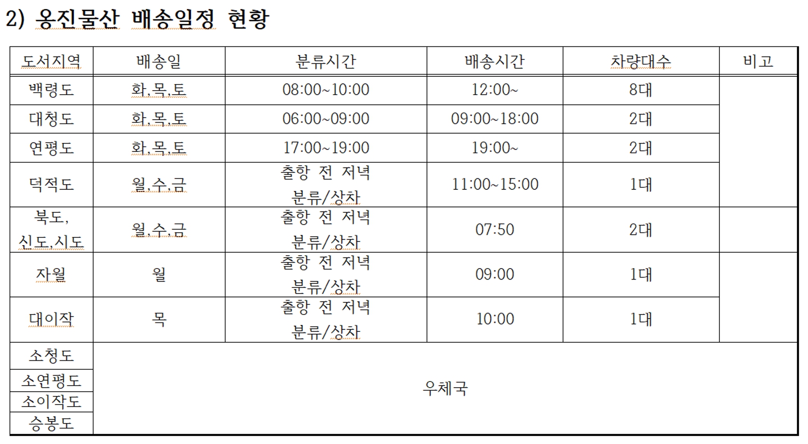 ¿ËÁø¹°»ê ¹è¼ÛÀÏÁ¤ ÇöȲ